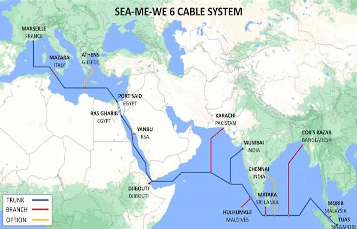 In addition to Mobily, the SEA-ME-WE (6) consortium includes Singtel (Singapore), Telekom Malaysia, Telin (Indonesia), Bangladesh Submarine Cable Company, Bharti Airtel Ltd. (India), Sri Lanka Telecom, Dhiraagu (Maldives), Trans World Associates (Pakistan), Djibouti Telecom, Telecom Egypt, and Orange (France).