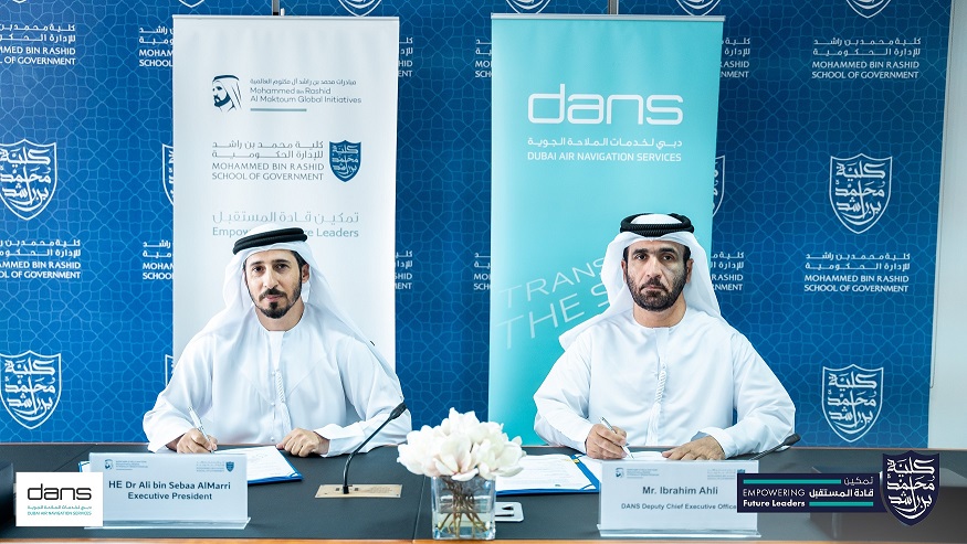 “This agreement we are signing with Dubai Air Navigation Services allows us to offer training opportunities to their team of officials and professionals, particularly with the Executive Diploma Programme in Leadership and Administration, as well as to tap into their experiences and knowledge to enrich our offering as one of the most prominent academic research institutions specialising in government administration and public policy in the Arab world,” H.E. added.