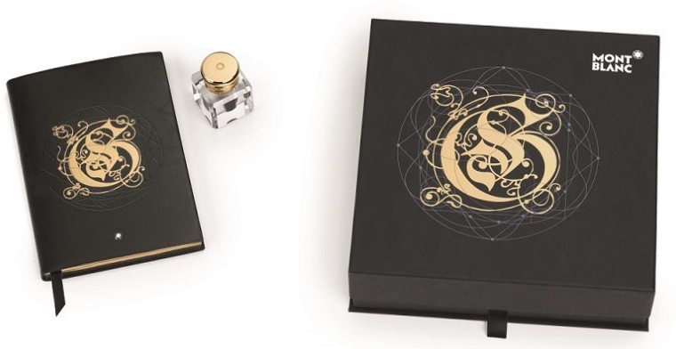The counterpart of the rare ink, the Golden Elixir Notebook is reminiscent of the magnificence of Medieval books with their leather covers elaborately decorated in the finest gold to reflect the uniqueness and preciousness of the illuminated manuscripts held inside. The soft calfskin leather on the outside of the notebook is imprinted with an ornate “G” monogram in 22ct gold leaves to celebrate the magic of gold. Inside the notebook, heavy deep black allows the Golden Elixir Ink to shine on its pages. In addition to a black grosgrain bookmark and gold paper edges, the notebook offers a wide range of calligraphy examples for inspiration.