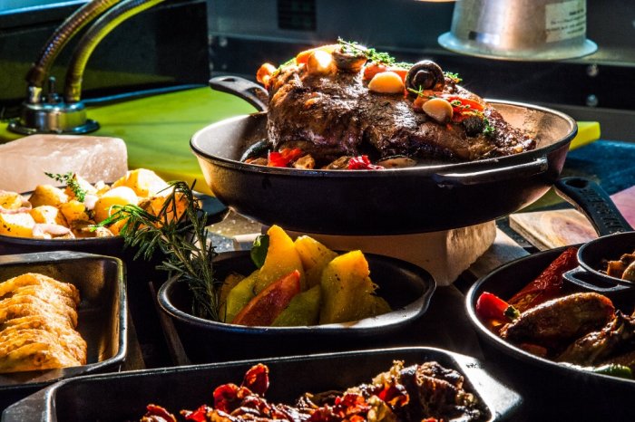 “Our French Pastry Chefs invite you to visit Waffle and Crepes station that offers wide selection of waffles, crepes, pancakes, French toasts, muffins, cronuts, etc. I recommend to try freshly made Oreo waffles that are crunchy on the outside with Oreo paste from the inside. They are topped with homemade vanilla bean ice cream and lots of caramel sauce, crème patisserie, strawberries, raspberries, blueberries & double cream,” says Executive Chef Kim Gates.