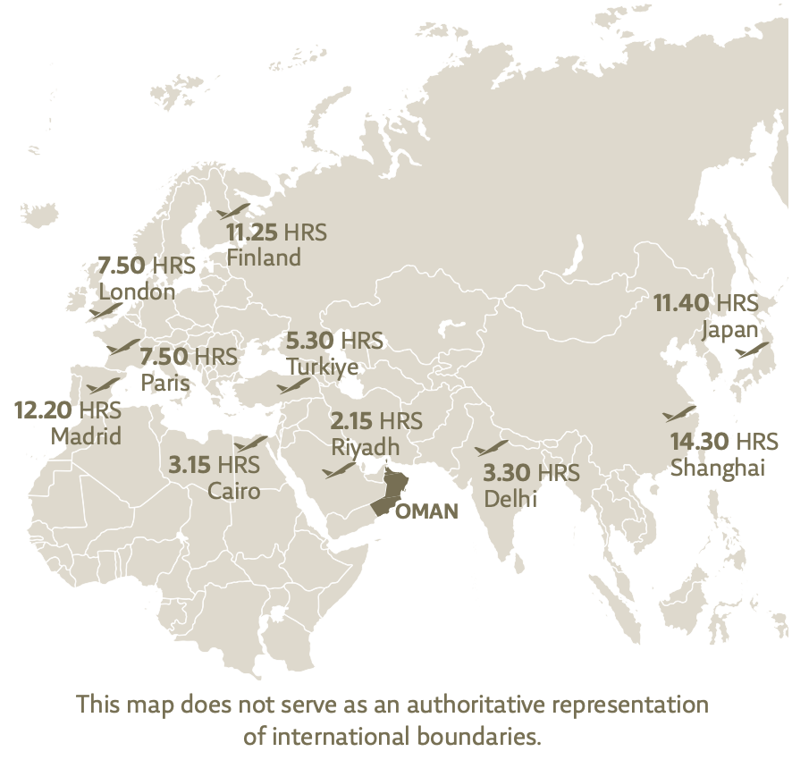 Oman is strategically located within a three-hour flight of 30% of the world’s population, making it a prime gateway to global markets and opportunities and offers access to a thriving market of 65 million consumers, positioning it as a hub for regional growth and opportunity