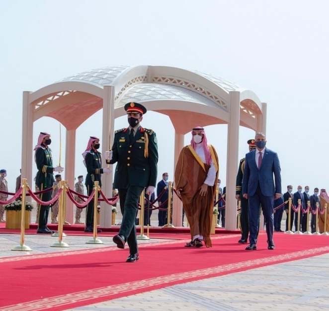 At the invitation of the Custodian of the Two Holy Mosques King Salman bin Abdulaziz Al Saud, Prime Minister of the Republic of Iraq Mustafa Al-Kadhimi arrived in Riyadh today on an official visit to the Kingdom of Saudi Arabia.