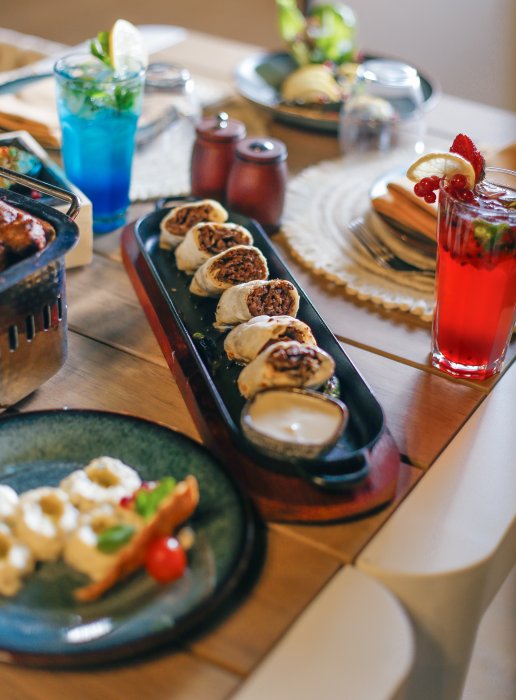 The Lounge’s menu includes a range of delectable dishes, including appetisers, traditional Saudi dishes, grills, and desserts, as well as an array of Shisha options. Showcasing their expertise at live-cooking stations, the chefs provide guests with the opportunity to witness the culinary artistry firsthand as they meticulously prepare each dish to perfection. Among the mouthwatering options are the traditional Manto dish, Shish Tawouk, Shawarma, and a variety of other delicious choices to satisfy your taste buds. In addition to that, The Lounge offers an impressive selection of beverages, including non-alcoholic cocktails, and features a drink bar crafted by a skilled bartender, eager for you to savor the refreshing drinks.