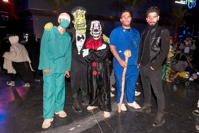 Another partygoer, Salim Al-Harthi, dressed as a reaper character with a scythe and mask because he found it appealing and wanted to look scary.