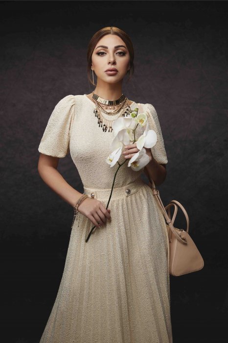 The highlights of the 2022 Myriam Fares Collection include pleated dresses in soothing colours, a bright bandana-pattern dress in eye-catching red, and a long-sleeve embellished dress in jet black. The designs boast Middle Eastern elements as well as reinterpretations of global contemporary fashion.