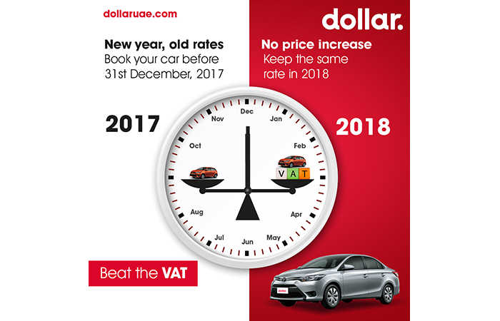 Marwan Al Mulla, General Manager of Dollar for UAE and Oman, said: “At Dollar, our goal is make simple and rewarding car rental experience. To welcome the new year, we are offering a price freeze on rentals for new customers so they need not worry about rate increase once the Value Added Tax (VAT) charges take effect on 1st January. We encourage our clients to book now and keep the same rate for 2018.”