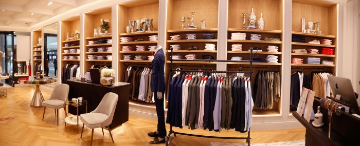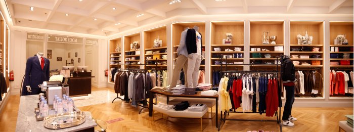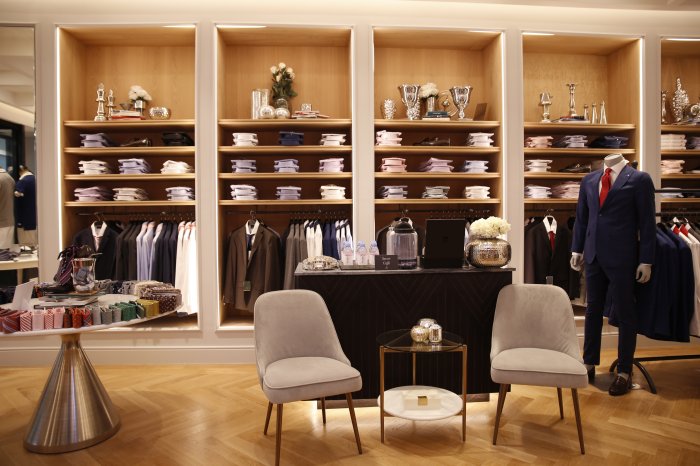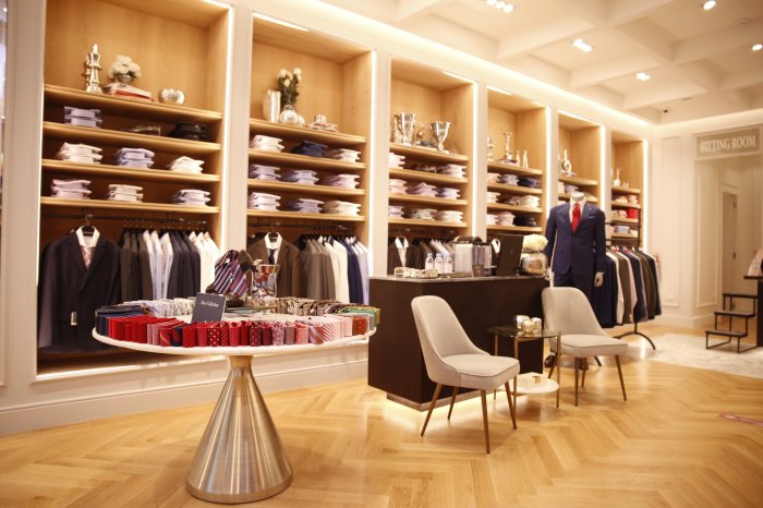 Shoppers will feel as if they are in a New York penthouse with beautifully designed stores including a Sacoor Cafe for complimentary espressos and Evian water, an in-store Tailor’s Room for customized alterations on any purchase, and a relaxing lounge environment furnished with comfortable armchairs and sofas.