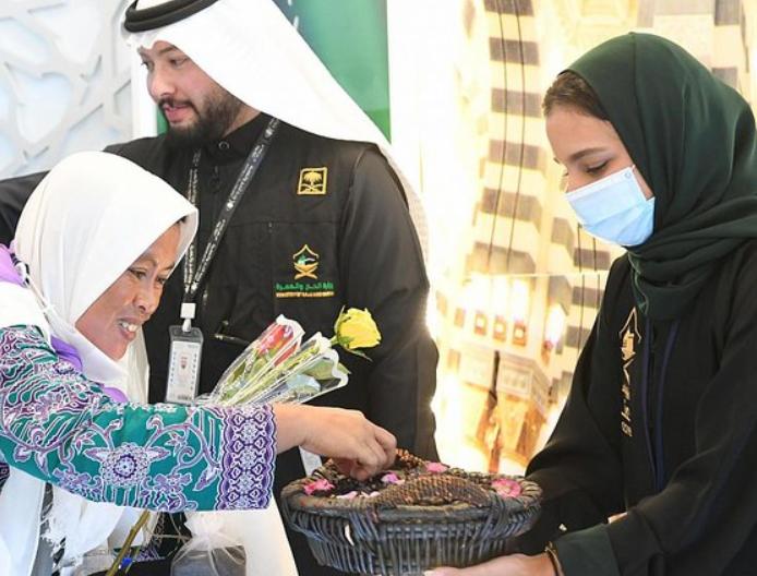 The pilgrims, who arrived in Madinah from Indonesia, were presented flowers, dates and Zamzam water bottles upon arrival, state news agency SPA reported.