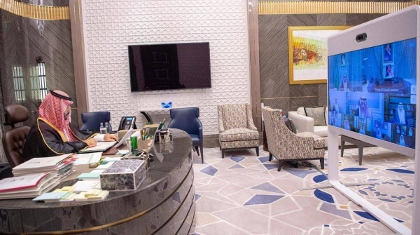 During a virtual session chaired by Custodian of the Two Holy Mosques King Salman, the Cabinet referred to the G20 Interfaith Forum under the Saudi presidency in which around 500 prominent global figures from 45 countries participated.