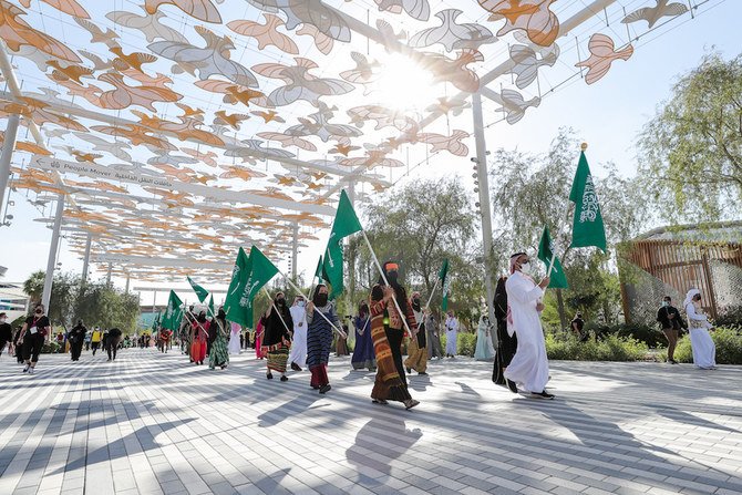 DUBAI: An excited crowd gathered outside the Saudi pavilion at Expo 2020 Dubai on Jan. 7, their images reflected on its award-winning LED mirror-screen display as they awaited the start of the Saudi Culture Parade.