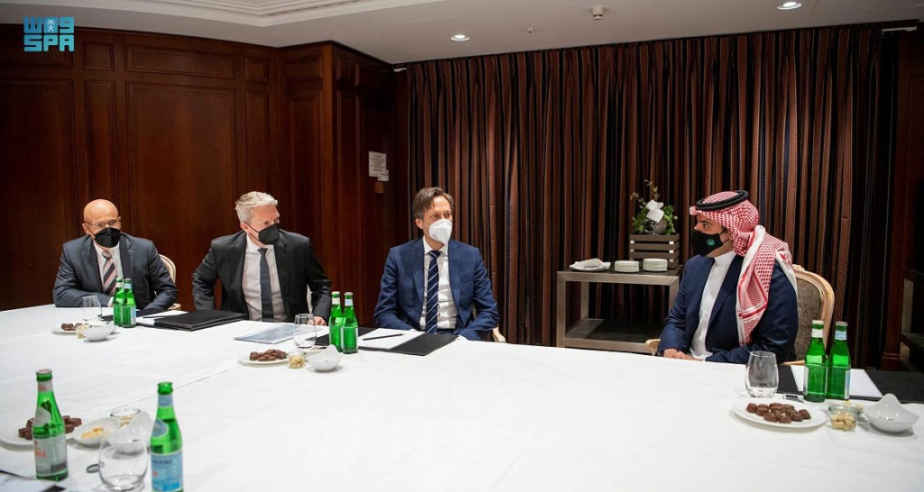 Prince Abdulaziz bin Saud bin Naif bin Abdulaziz, Saudi Minister of Interior, met at his residence here today with Chief Executive officers of various leading German companies, including Hensoldt, Airbus for Defense and Space, Veredus, ThyssenKrupp, Lürssen, Transportation Sector at Siemens, and Heckler & Koch.