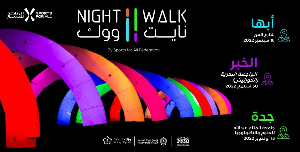 The Saudi Sports for All Federation is bringing back its successful "Night Walk," a fully inclusive walking event, aiming to attract more than 5000 participants in each city.