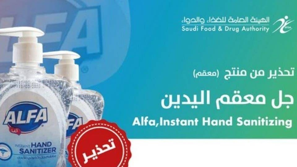 The Saudi Food and Drug Authority (SFDA) on Saturday warned consumers against the use of Alfa Instant Hand Sanitizer gel, produced by Modern Chemicals Factory, because of the high content of methyl methanol alcohol in it.