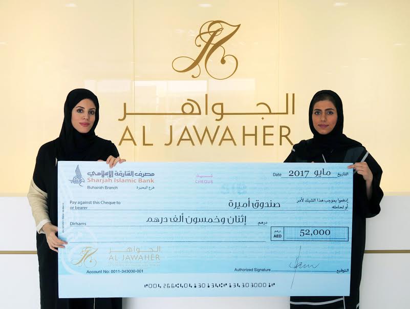Hanan Al Mahmoud, Director of Al Jawaher Reception and Convention Centre (JRCC), presented the donation to Mariam Al Hammadi, Director of The Big Heart Foundation (TBHF). The gift came from the proceeds generated from entrance fees to the second edition of the Sharjah Bridal Fair, which was organised and hosted by the JRCC from 3-6 May 2017.