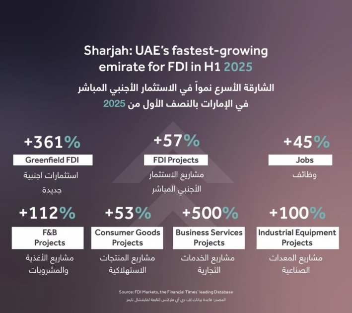 The Sharjah FDI Office (Invest in Sharjah) has announced an exceptional increase in foreign direct investment during the first half of 2025, marking the strongest performance among all UAE emirates.
