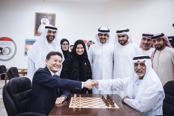 Sheikh Saud Bin Abdulaziz Al Mualla, Chairman of the Sharjah Cultural and Chess Club welcomed VIP guests including H.E Sheikh Nahyan Bin Mubarak Al Nahyan, Minister of Culture and Knowledge Development, Dr Amal Al Qubaisi, Deputy Prime Minister and Minister of the Interior, Sheikh Saqr Bin Mohammed Bin Khalid Al Qasimi, Chairman of the Sharjah Sports Council, Kirsan Ilyumzhinov President of the International Chess Federation (FIDE), Georgious Makropoulos, Deputy President of FIDE, Ilya Merenzon, Chief Executive of World Chess by Agon Limited, Amir Kanaan, General Manager of Kaspersky in MENA, alongside a number of local and international officials.