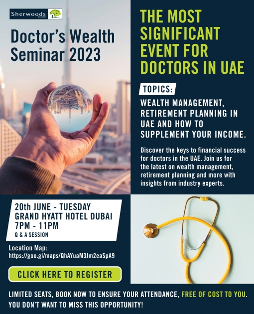 Sherwoods International, a trusted name in forging financial success partnerships since 1988, is pleased to announce an educational seminar designed exclusively for doctors in the UAE on 20th of June, starting at 7pm, at Al Maasa hall, Grand Hyatt in Dubai.
