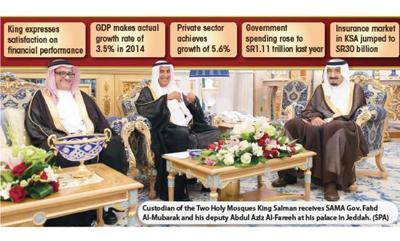 “The national economy has achieved good results in 2014 with GDP making an actual growth rate of 3.5 percent, exceeding the rate of 2.7 percent achieved in 2013 and the world average of 3.4 percent,” Al-Mubarak told the king.