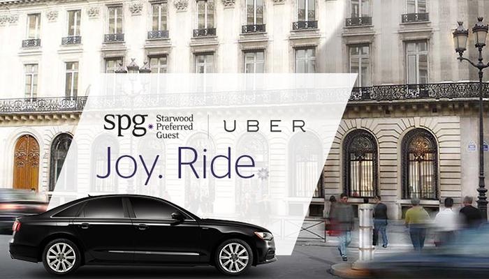 Jumpstart your #SuiteRide this Weekend To kickoff the partnership, Uber and Starwood are teaming up to surprise and delight SPG members and Uber riders with an “SPG #SuiteRide” in five cities around the world. On Saturday, February 28 Uber riders who link their Starwood and Uber accounts can select the “SPG” vehicle option within the Uber app for a door-to-door branded hotel experience on wheels and 15,000 Starpoints – good for a free night at category 1-5 Starwood hotel.