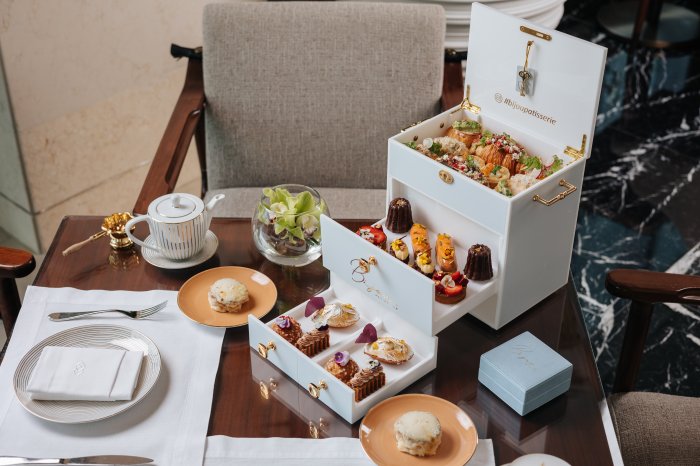 Guests can delight in curated summer cakes and pastries featuring a must try apricot & pistachio éclair and a new addition to the savory selection, the signature Croque Monsieur. Served in an elegant jewelry box, with bite sized savory and sweet treats that are both a treat for the eyes and palette, this French lounge seamlessly weaves food and design into one pleasant afternoon indulgence.