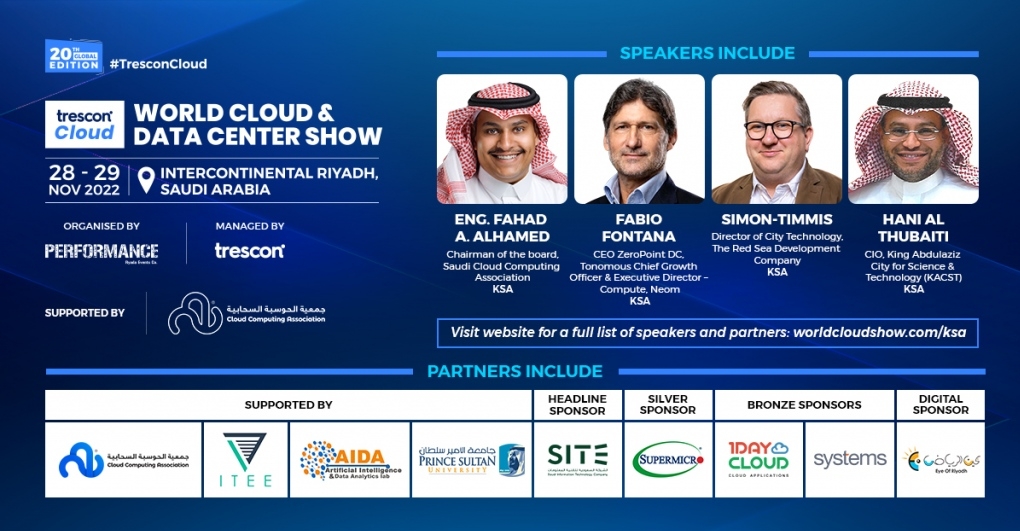 Officially supported by the Saudi Cloud Computing Association, Trescon's World Cloud & Data Center Show is hosting global front-runners of the cloud and data center industries. An event to commemorate the bigwigs of cloud, the World Cloud & Data Center Show will be held on the 28 – 29 November at InterContinental Riyadh in Saudi Arabia.