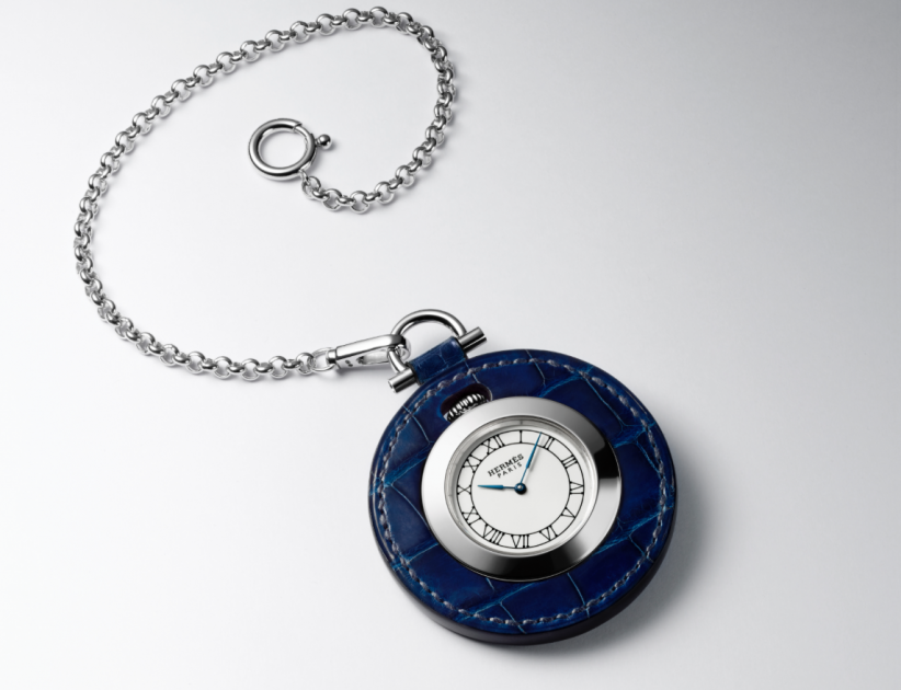The Pocket plein cuir honours the leather-making and watchmaking expertise cultivated by the Maison. Finely crafted in the Hermès workshops, this new pocket watch is comfortably nestled inside a colourful alligator jacket.