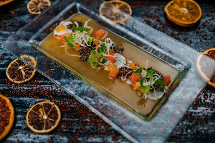 Price: 4 course set menu including a glass of bubbly at AED 688 per couple
