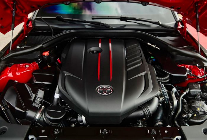 The all-new fifth-generation Supra marks the end of the 17-year hiatus since production of the previous generation concluded in 2002. Ever since the Supra's inception in 1978, all generations have been front-engine, rear-wheel-drive vehicles powered by an inline six-cylinder engine. The latest rendition is no exception. This time around, extensive attention has also been paid to the three fundamental elements of wheelbase, tread, and center of gravity, thus achieving handling performance befitting a pure sports car.