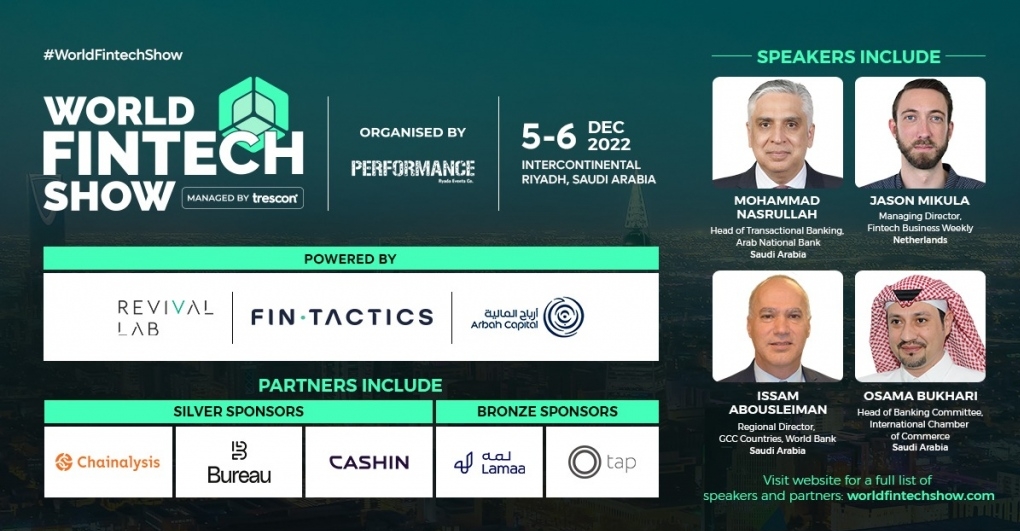Powered by Revival Lab, Fintactics, and Arbah Capital, Trescon's World Fintech Show, one of the most-elite fintech events in the world will be hosted in Riyadh, Saudi Arabia on the 5th and 6th of December 2022, at InterContinental Riyadh. A collaboration of businesses, investors, policymakers, government officials, and partners will re-imagine comprehensive financial services by adopting the most impactful technologies.