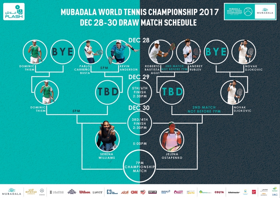The Mubadala World Tennis Championship 10th edition will run from December 28 to 30 at the International Tennis Center at Zayed Sports City in Abu Dhabi. A sell-out crowd of over 5,000 per day are expected to attend and experience the thrilling on-court action.
