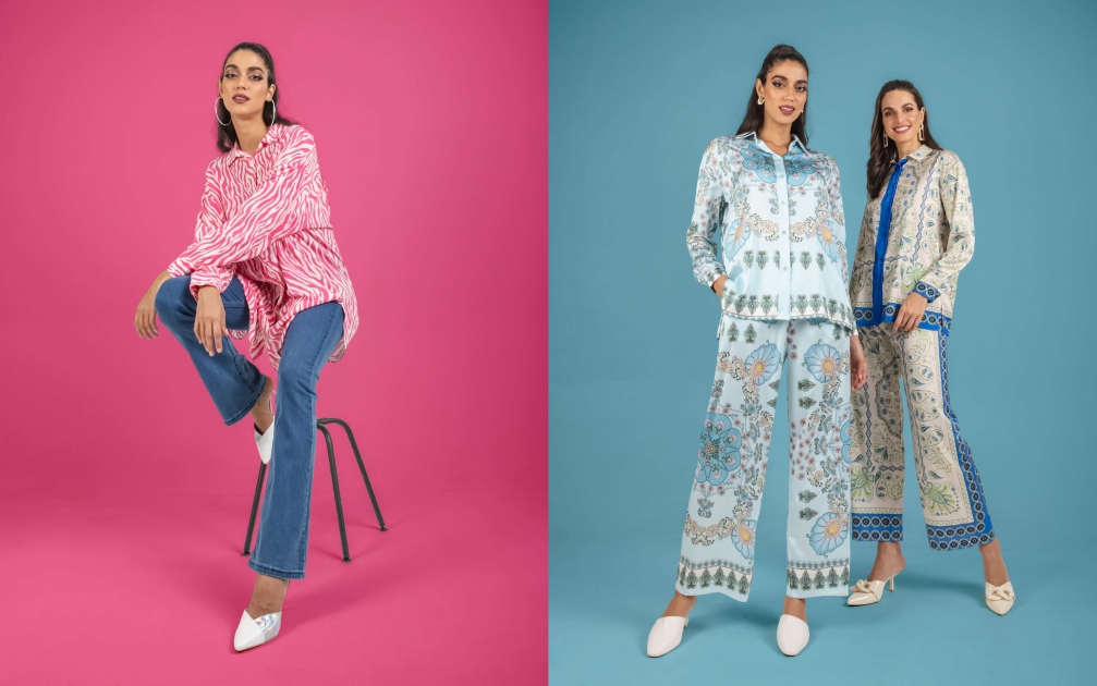 To begin with, the premium collection will be exclusive for women but will soon have options for men and kids as well. Satin suit sets in pastel colours and complementary all-over floral and geometric prints are a must-have in wardrobes. Cheery casuals also include A-line dresses in three-quarter sleeves, leopard print satin dresses with lantern sleeves, puff-sleeved off-shoulder ruffle dresses in soothing creams, floral and paisley printed shirts, knee-length denim, and long-sleeved printed dresses in viscose rayon — all in absorbent, lightweight and soft materials.