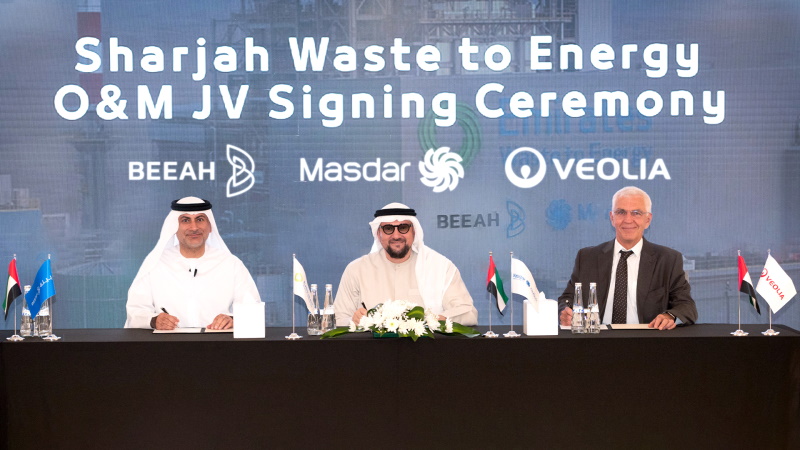 Veolia Near & Middle East, the global leader in optimised resource management, BEEAH Group, the Middle East's sustainability pioneer, and Masdar, the global leader in renewable energy solutions, have formed a joint venture to operate and maintain the Sharjah Waste to Energy Plant – the region's first of its kind at commercial-scale.