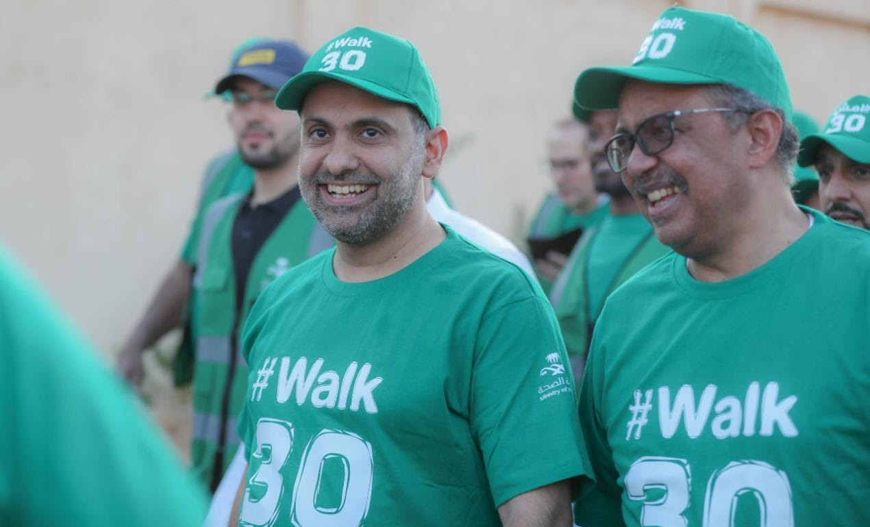 Saudi Minister of Health Fahd Al-Jalajel and WHO Director-General Dr. Tedros Adhanom Ghebreyesus joined Saudis of all ages in the #Walk30 event, held Tuesday at the Wadi Hanifa Park in the Saudi capital, Riyadh.