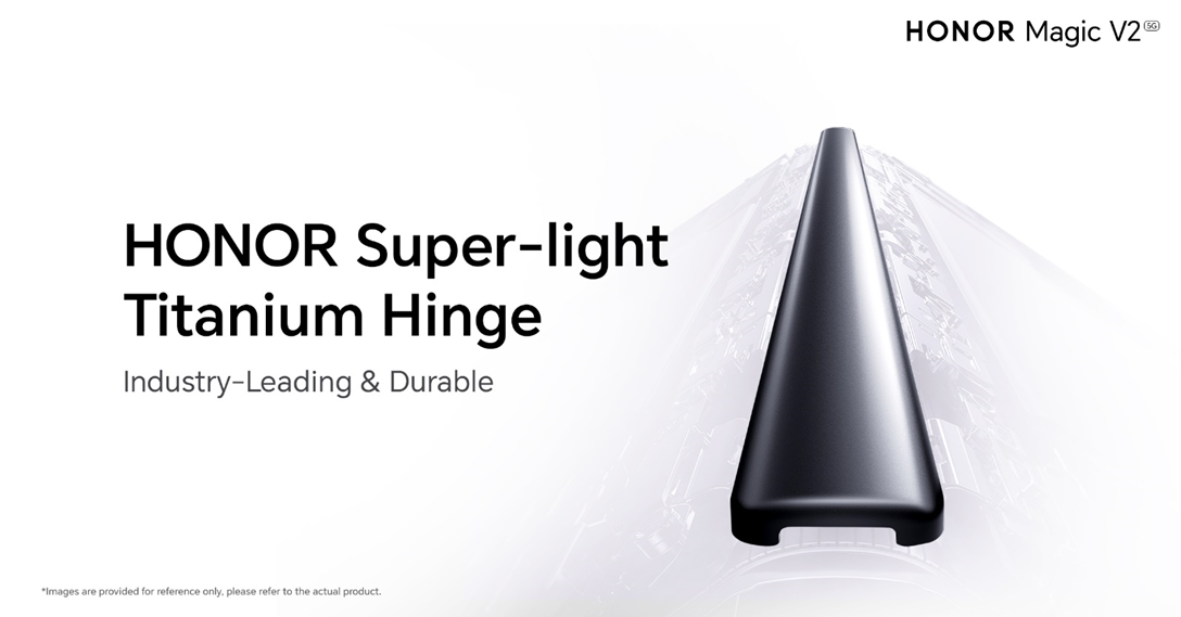 HONOR Magic V2’s state-of-the-art Super-light Titanium Hinge allows for an ultra-light device with exceptional durability. A new SGS-certified HONOR’s proprietary steel has been expertly created for use in the hinge's main body of the HONOR Magic V2, providing added robustness and durability to the hinge mechanism.