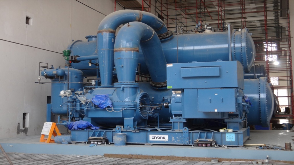 The Plants provide the chilled water that flows inside the Air Handling Units, which in turn pump the cooled 100% fresh air across the Mosque. The Chiller Plant at Al Shamiyah is considered to be the second largest Chiller Plant in the World, housing specially designed YORK OM Chillers, which are huge sophisticated chillers, with motors similar in size to a regular car.