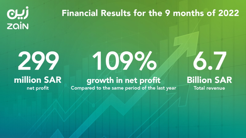 Zain KSA recorded 109% growth in net profit during the first nine months of 2022, compared to the corresponding period 2021, as revenue amounted to SAR6,7 billion by the end of Q3 2022.