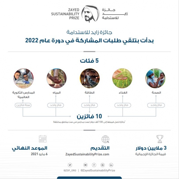 The Zayed Sustainability Prize, the UAE’s pioneering global award for rewarding impact, innovation, and inspiration, has officially announced that the 2022 edition is now open for submissions.